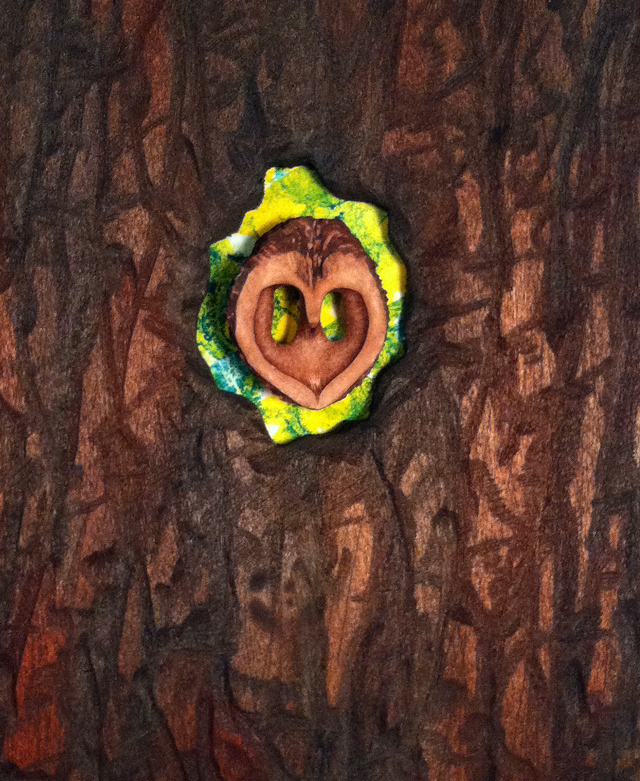 ANSWER TO MYSTERY TECHNIQUE #43: This was done on an upcycled vinyl banner. First I used a permanent marker to sketch the design on the unprinted back of the banner, marking all the negative shapes with an x. I then cut out all the negative areas with an X-acto knife. After I finished cutting, I painted it with a mixed acrylic bluish black.