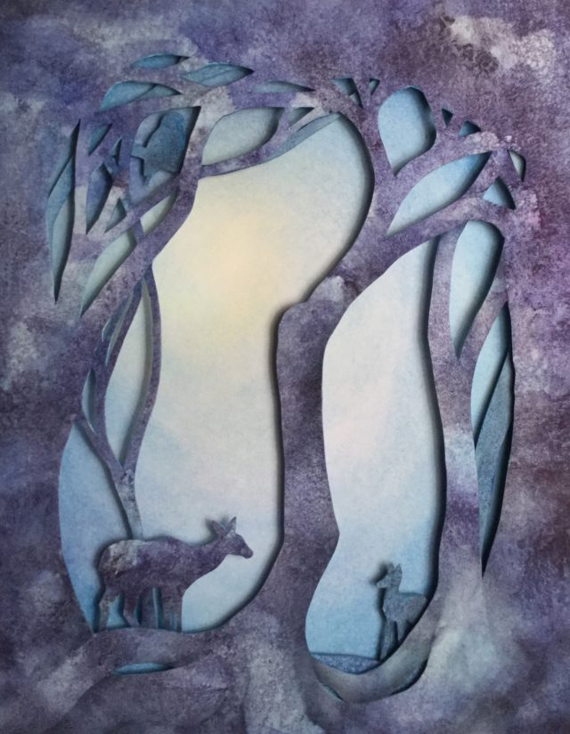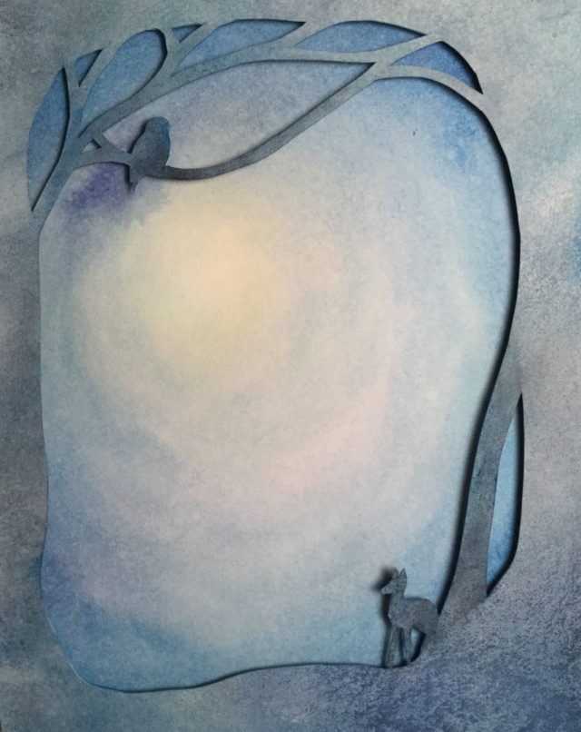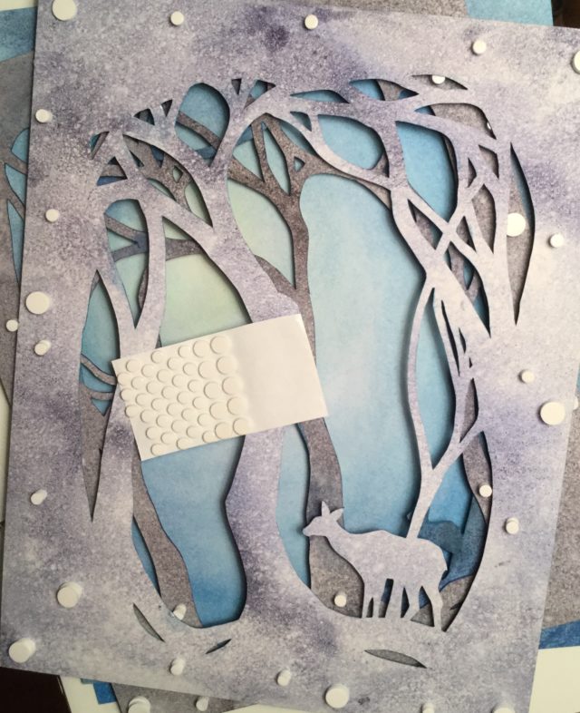 Unseen Omens II is one of the wall-hung watercolor sculptures from my Reshaping the Shadows exhibition. Here’s a view of the back of 2 of the panels and the acid-free foam circles I used to create depth: